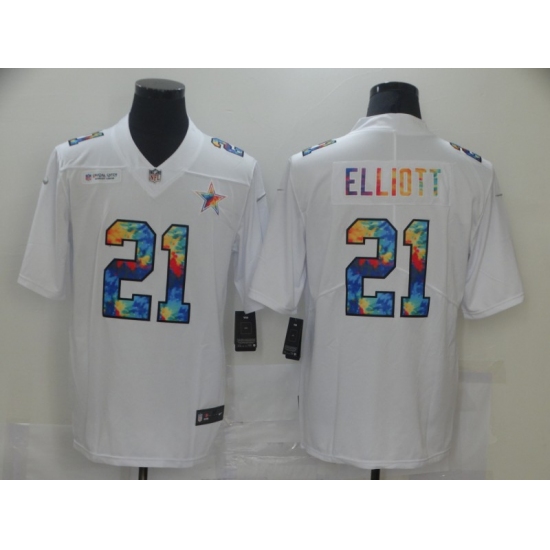 Men's Dallas Cowboys #21 Ezekiel Elliott White Rainbow Version Nike Limited Jersey