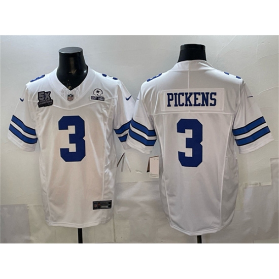Men's Dallas Cowboys #3 George pickens White F.U.S.E. With 5x Super Bowl Champions & Established In 1960 Vapor Limited Stitched Football Jersey