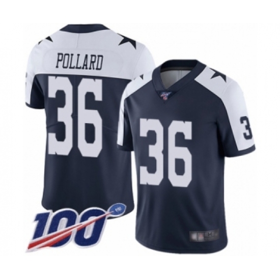 Men's Dallas Cowboys #36 Tony Pollard Navy Blue Throwback Alternate Vapor Untouchable Limited Player 100th Season Football Jersey