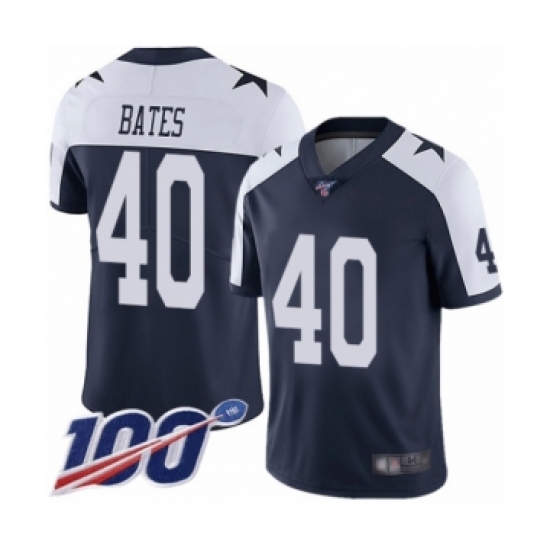 >Men's Dallas Cowboys #40 Bill Bates Navy Blue Throwback Alternate Vapor Untouchable Limited Player 100th Season Football Jersey