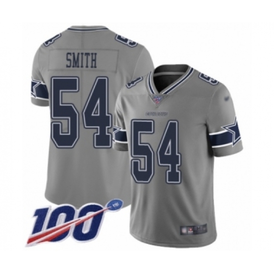 Men's Dallas Cowboys #54 Jaylon Smith Limited Gray Inverted Legend 100th Season Football Jersey