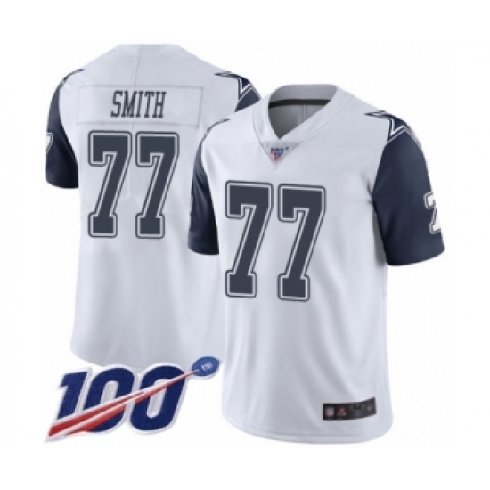 >Men's Dallas Cowboys #77 Tyron Smith Limited White Rush Vapor Untouchable 100th Season Football Jersey