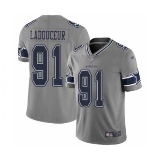 >Men's Dallas Cowboys #91 L. P. Ladouceur Limited Gray Inverted Legend Football Jersey