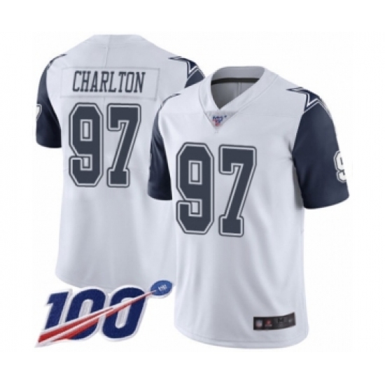 >Men's Dallas Cowboys #97 Taco Charlton Limited White Rush Vapor Untouchable 100th Season Football Jersey