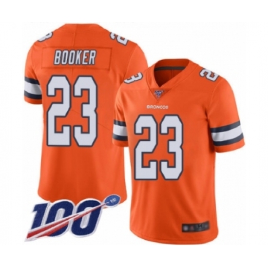 Men's Denver Broncos #23 Devontae Booker Limited Orange Rush Vapor Untouchable 100th Season Football Jersey