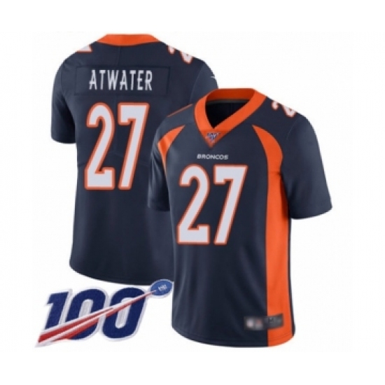 >Men's Denver Broncos #27 Steve Atwater Navy Blue Alternate Vapor Untouchable Limited Player 100th Season Football Jersey
