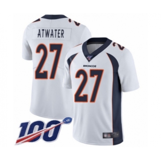 Men's Denver Broncos #27 Steve Atwater White Vapor Untouchable Limited Player 100th Season Football Jersey