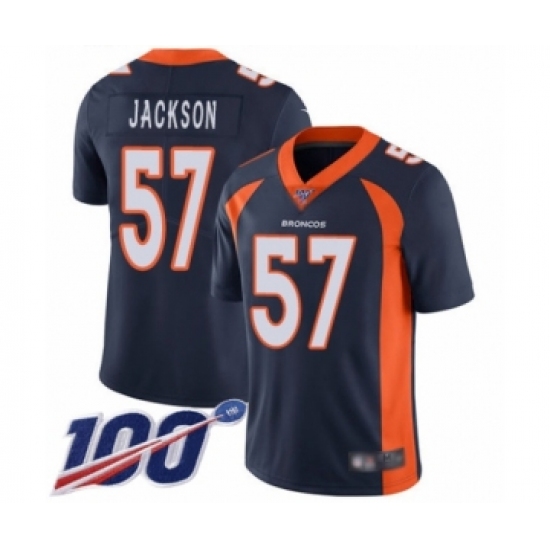 >Men's Denver Broncos #57 Tom Jackson Navy Blue Alternate Vapor Untouchable Limited Player 100th Season Football Jersey
