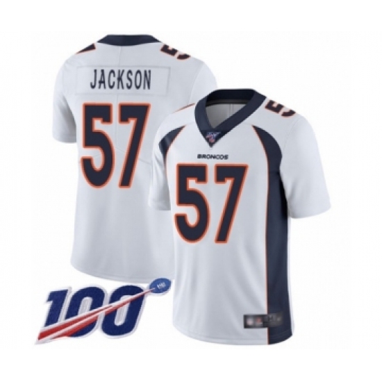 >Men's Denver Broncos #57 Tom Jackson White Vapor Untouchable Limited Player 100th Season Football Jersey