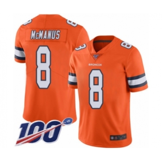 Men's Denver Broncos #8 Brandon McManus Limited Orange Rush Vapor Untouchable 100th Season Football Jersey