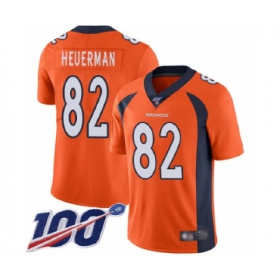 >Men's Denver Broncos #82 Jeff Heuerman Orange Team Color Vapor Untouchable Limited Player 100th Season Football Jersey