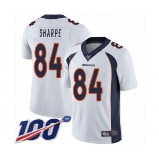 Men's Denver Broncos #84 Shannon Sharpe White Vapor Untouchable Limited Player 100th Season Football Jersey