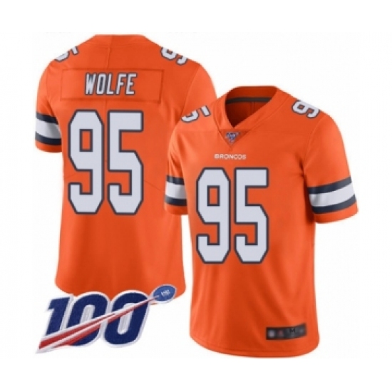 Men's Denver Broncos #95 Derek Wolfe Limited Orange Rush Vapor Untouchable 100th Season Football Jersey