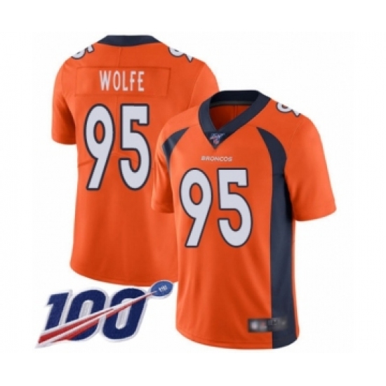 Men's Denver Broncos #95 Derek Wolfe Orange Team Color Vapor Untouchable Limited Player 100th Season Football Jersey