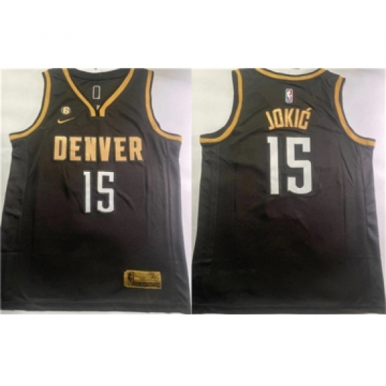 Men's Denver Nuggets #15 Nikola Jokic Black 2023 Finals City Edition Stitched Basketball Jersey