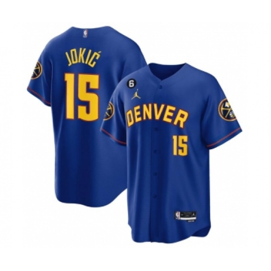 Men's Denver Nuggets #15 Nikola Jokic Blue With No.6 Stitched Jersey