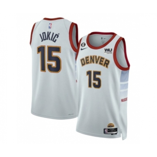 Men's Denver Nuggets #15 Nikola Jokic Gray 2022-23 City Edition With NO.6 Stitched Jersey