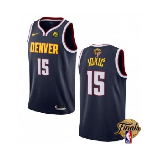 >Men's Denver Nuggets #15 Nikola Jokic Navy 2023 Finals Icon Edition Stitched Basketball Jersey