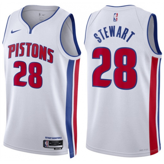 Men's Detroit Pistons #28 Isaiah Stewart White Association Edition Stitched Basketball Jersey