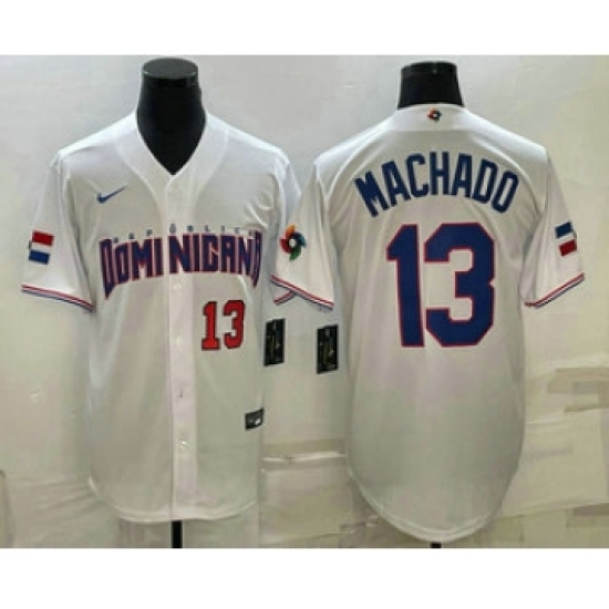 Men's Dominican Republic Baseball #13 Manny Machado 2023 White World Baseball Classic Stitched Jerseys