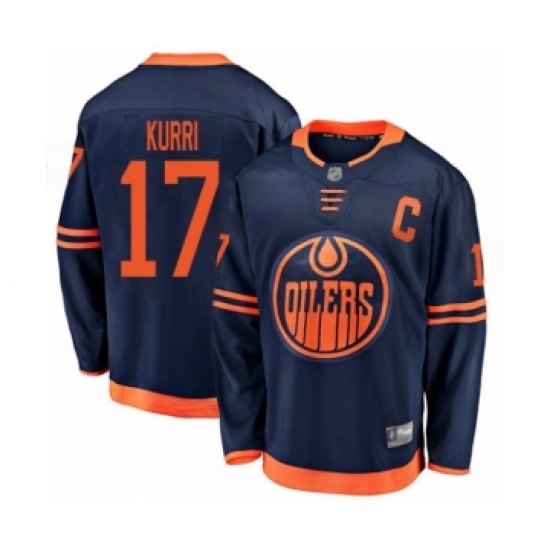 Men's Edmonton Oilers #17 Jari Kurri Authentic Navy Blue Alternate Hockey Jersey