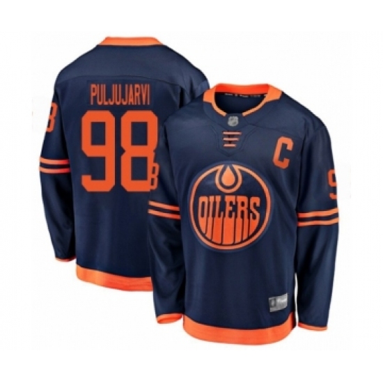 Men's Edmonton Oilers #98 Jesse Puljujarvi Authentic Navy Blue Alternate Fanatics Branded Breakaway Hockey Jersey