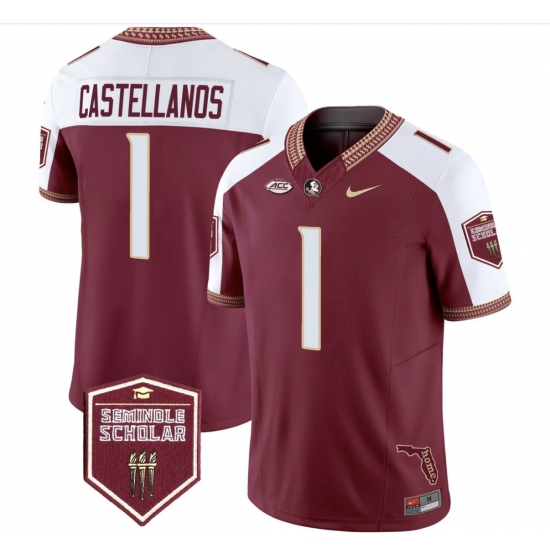 Men's Florida State Seminoles #1 Castellanos Red White Limited NCAA Jersey