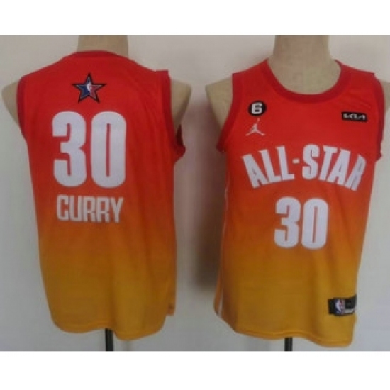 >Men's Golden State Warriors 30 Stephen Curry Orange 2022 All Star 6 Patchs Icon Sponsor Swingman Jersey