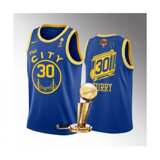 Mens Golden State Warriors #30 Stephen Curry Royal 2022 NBA Finals Champions Stitched Jersey