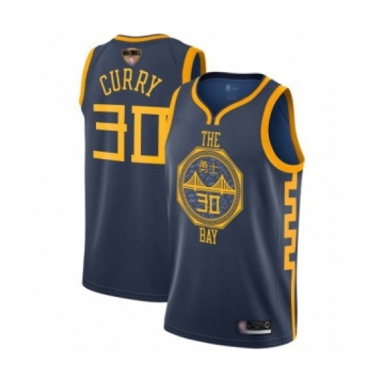 >Men's Golden State Warriors #30 Stephen Curry Swingman Navy Blue Basketball 2019 Basketball Finals Bound Jersey - City Edition