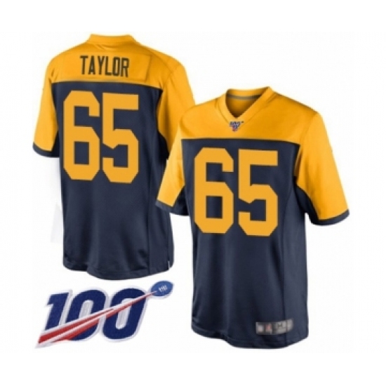 >Men's Green Bay Packers #65 Lane Taylor Limited Navy Blue Alternate 100th Season Football Jersey