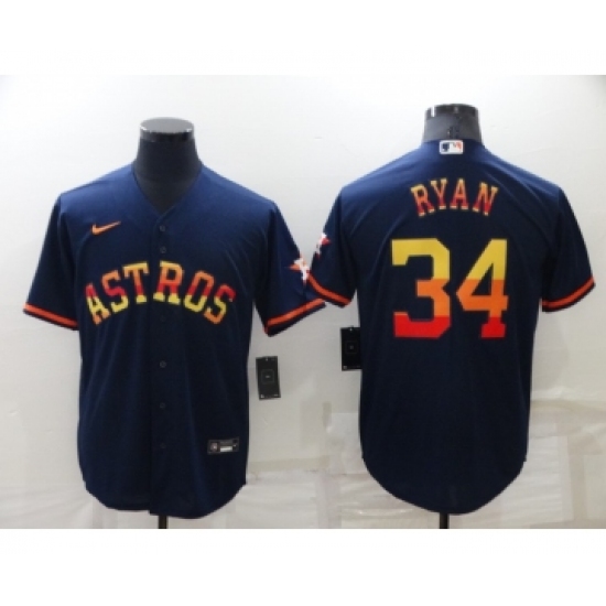 Men's Houston Astros #34 Nolan Ryan Navy Blue Rainbow Stitched MLB Cool Base Nike Jersey