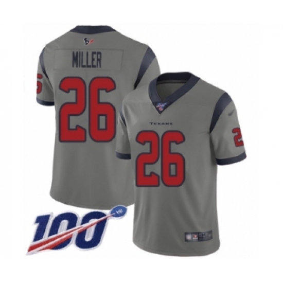>Men's Houston Texans #26 Lamar Miller Limited Gray Inverted Legend 100th Season Football Jersey
