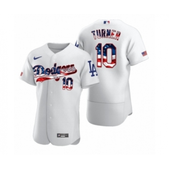 Men's Justin Turner #10 Los Angeles Dodgers White 2020 Stars & Stripes 4th of July Jersey