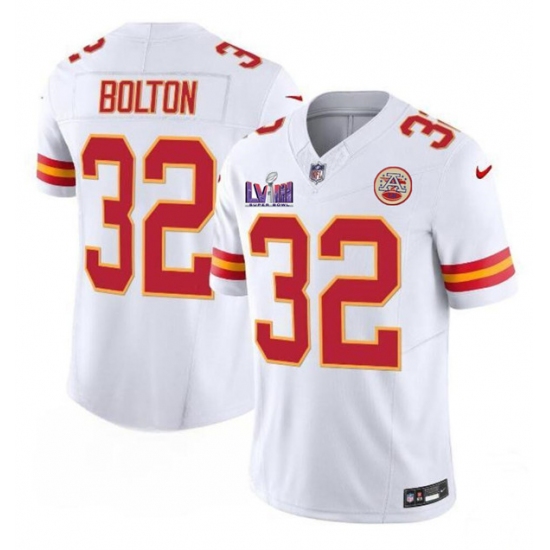 Men’s Kansas City Chiefs #32 Nick Bolton White F.U.S.E. Super Bowl LVIII Vapor Untouchable Limited Football Stitched Jersey
