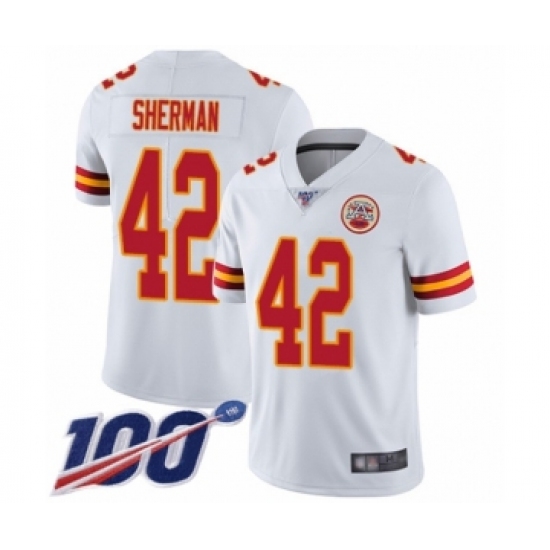 >Men's Kansas City Chiefs #42 Anthony Sherman White Vapor Untouchable Limited Player 100th Season Football Jersey