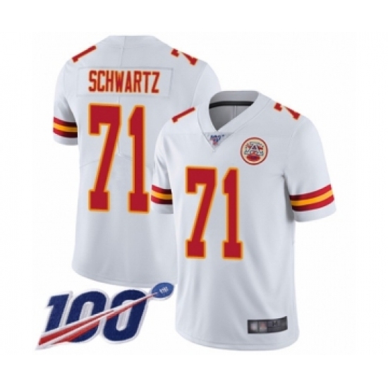 Men's Kansas City Chiefs #71 Mitchell Schwartz White Vapor Untouchable Limited Player 100th Season Football Jersey