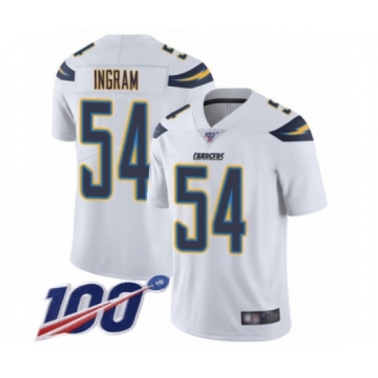 >Men's Los Angeles Chargers #54 Melvin Ingram White Vapor Untouchable Limited Player 100th Season Football Jersey