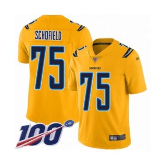 Men's Los Angeles Chargers #75 Michael Schofield Limited Gold Inverted Legend 100th Season Football Jersey