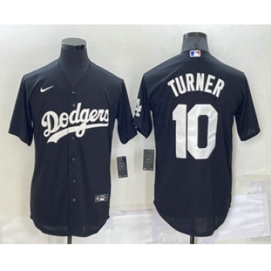 >Men's Los Angeles Dodgers #10 Justin Turner Black Turn Back The Clock Stitched Cool Base Jersey