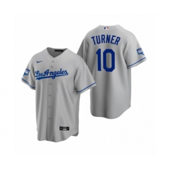 Men's Los Angeles Dodgers #10 Justin Turner Gray 2020 World Series Champions Road Replica Jersey