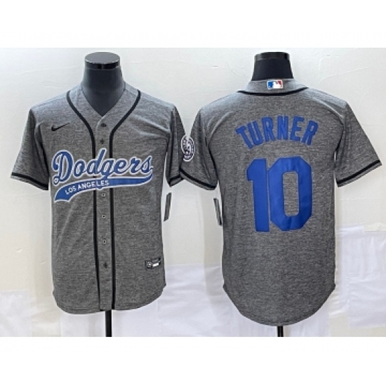 Men's Los Angeles Dodgers #10 Justin Turner Grey Gridiron Cool Base Stitched Baseball Jersey