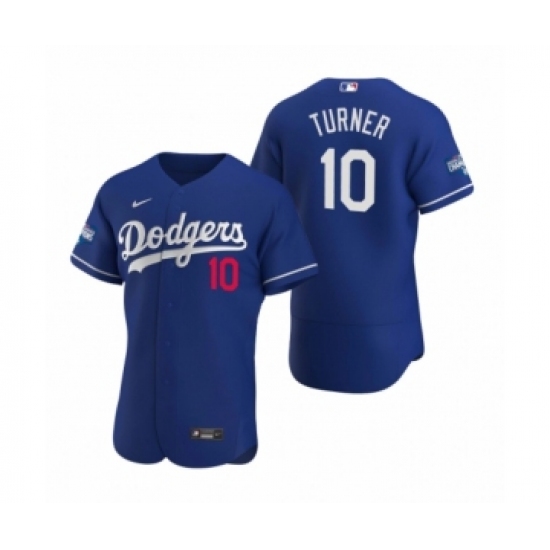 Men's Los Angeles Dodgers #10 Justin Turner Royal 2020 World Series Champions Authentic Jersey