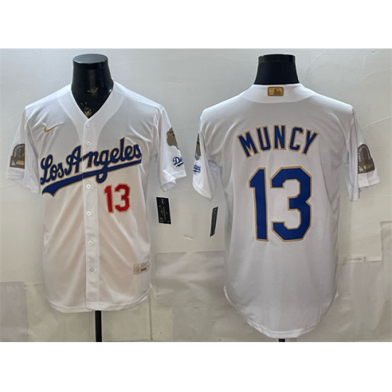Men's Los Angeles Dodgers #13 Max Muncy White Cool Base Stitched Baseball Jersey1