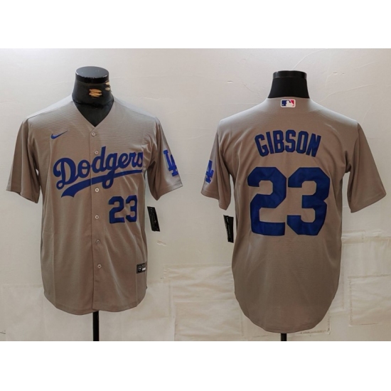 Men's Los Angeles Dodgers #23 Kirk Gibson Number Grey Cool Base Stitched Jerseys