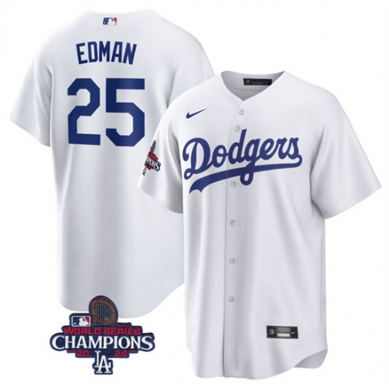 Men's Los Angeles Dodgers #25 Tommy Edman White 2024 World Series Champions Cool Base Stitched Baseball Jersey