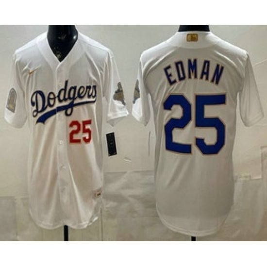 Men's Los Angeles Dodgers #25 Tommy Edman White 2026 Gold Back To Back World Champions Collection Stadium Jersey