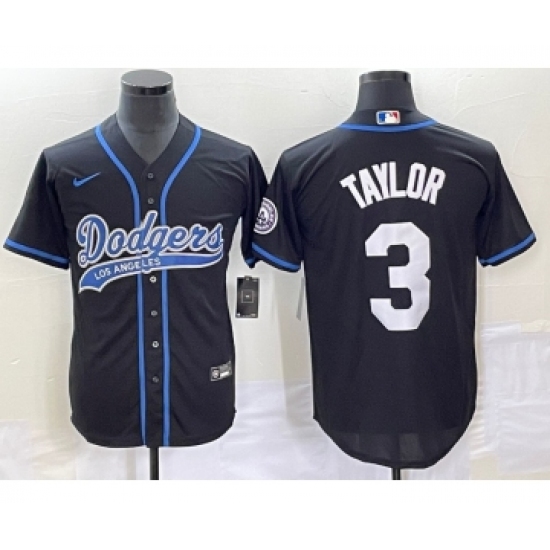 >Men's Los Angeles Dodgers #3 Chris Taylor Black Cool Base Stitched Baseball Jersey1