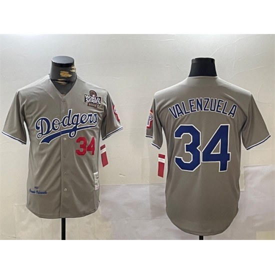 Men's Los Angeles Dodgers #34 Toro Valenzuela Grey 2024 World Series 1981 Cooperstown Stitched Baseball Jersey