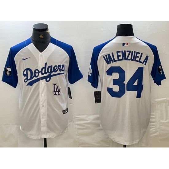 Men's Los Angeles Dodgers #34 Toro Valenzuela White Blue Fashion Stitched Cool Base Limited Jerseys